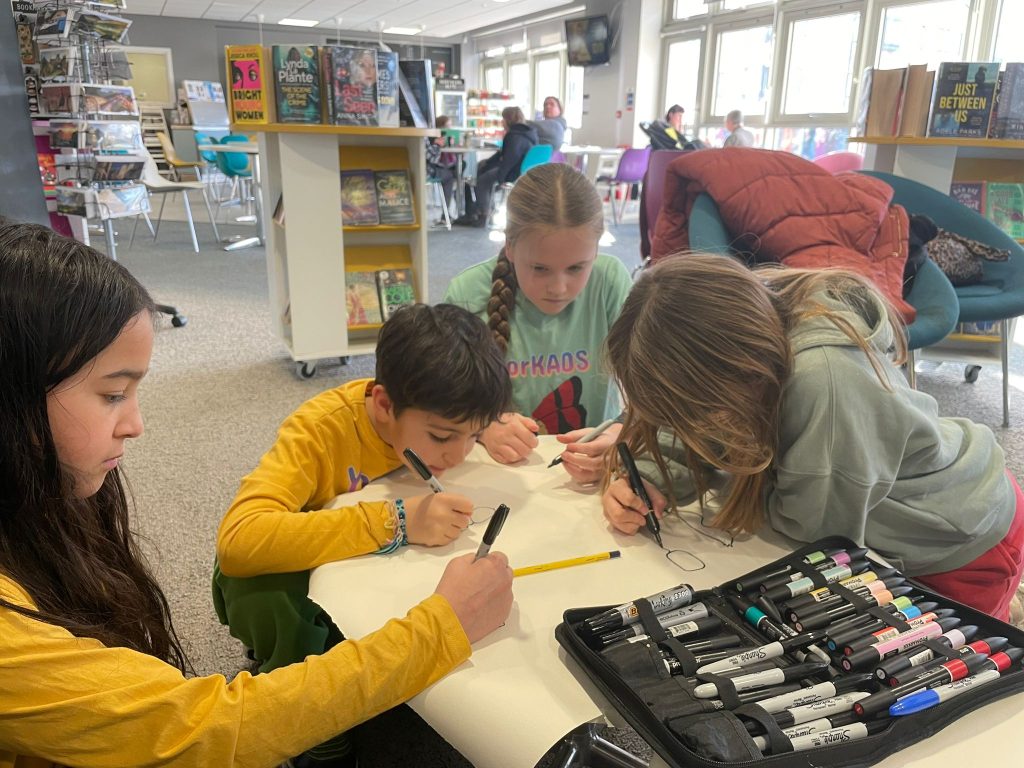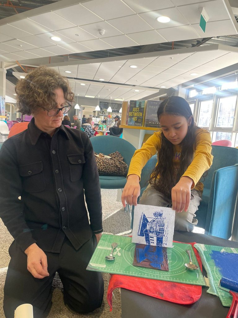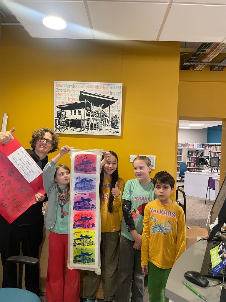 On Saturday we met with Stephen Lee Hodgkins at our local Library in Tang Hall. After discussing the theme of Stephen’s workshop, we all started making a new piece of art together.